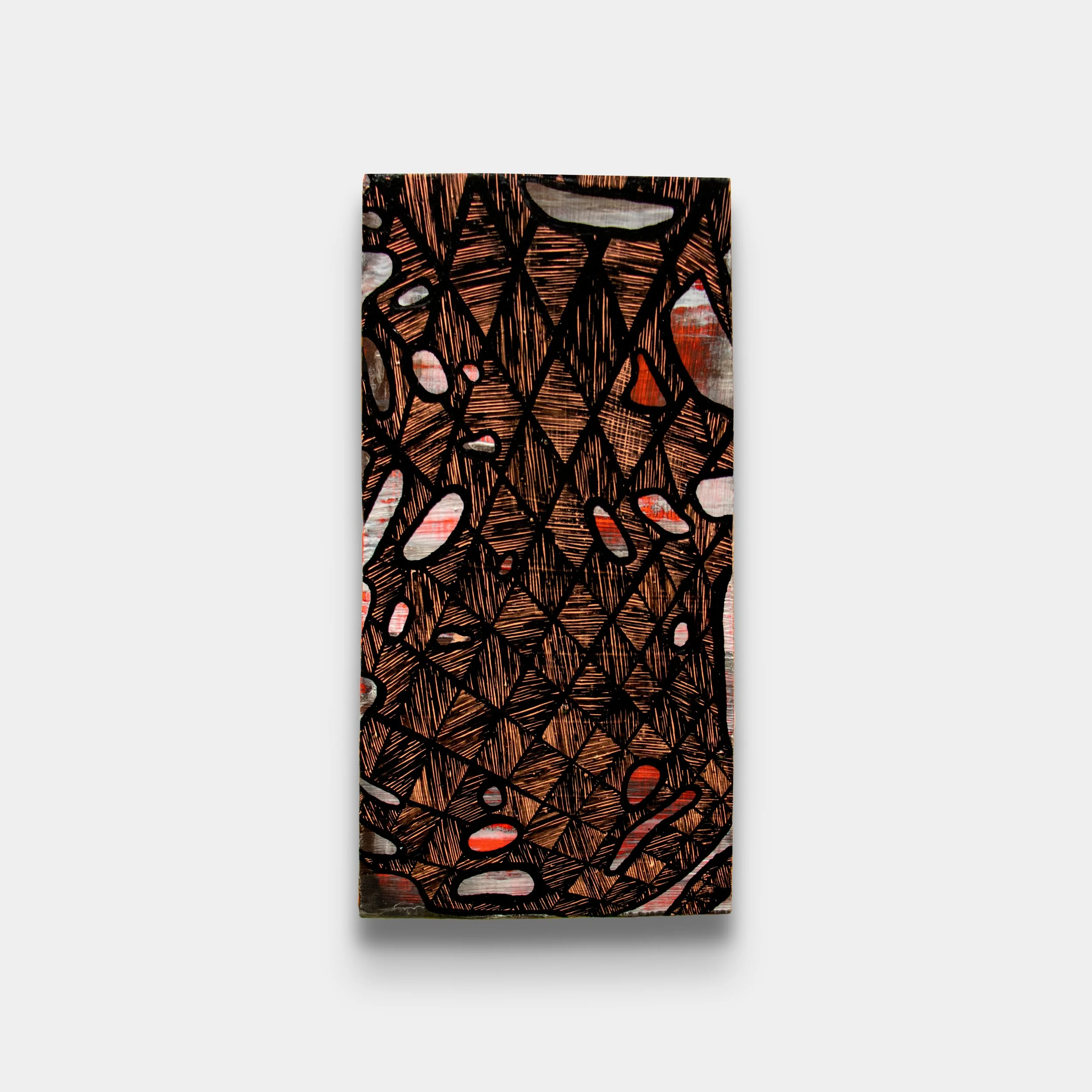 Timeshort VI, acrylic, pencil, and ink on reclaimed wood composite, 7.25” x 3.5”, April 2022